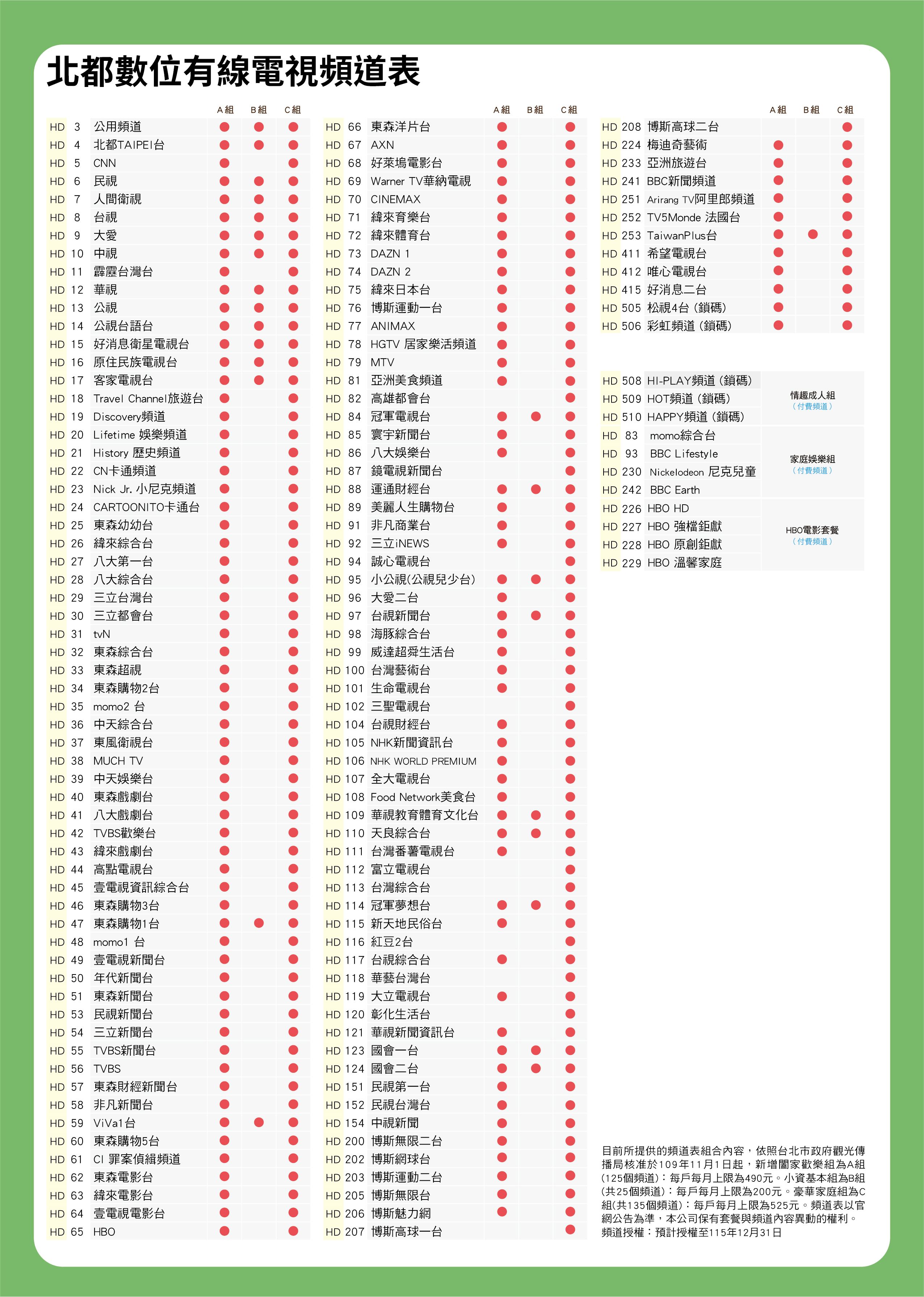 頻道表下載